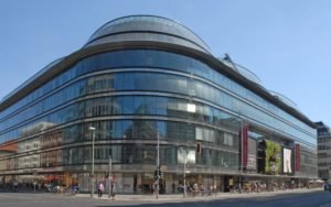 architecte : Jean Nouvel 1993-1996L’immeuble des Galeries Lafayette (quartier 207) se trouve dans la Friedrichstrasse. Sa façade entièrement en verre, permet de voir l’intérieur la nuit et reflète le jour tout son environnement urbain.